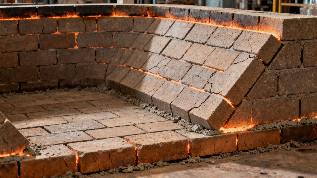 fused fused corundum brick (fused cast AZS) molten pool, hot surface, flow groove